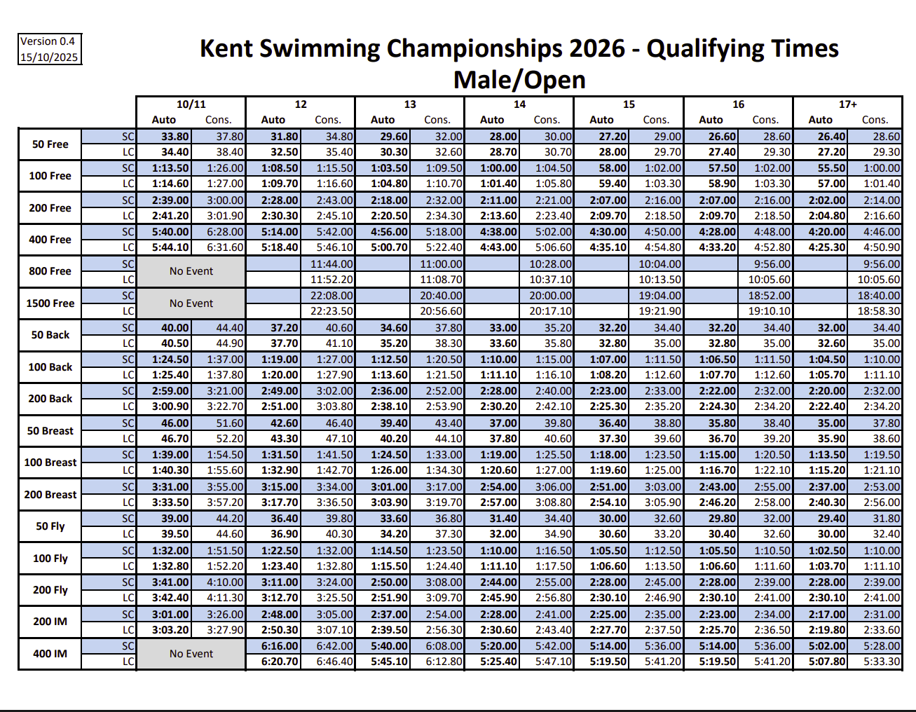 - Male/Open Qualifying Times v0.4